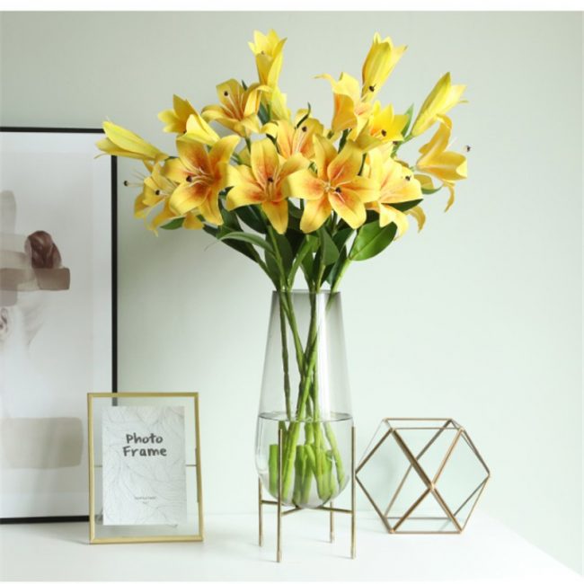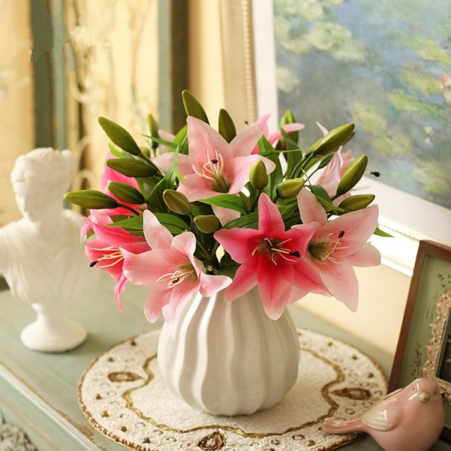 artificial flowers silk lilies faux plastic pu real touch floral bouquet party table centerpieces home decoration