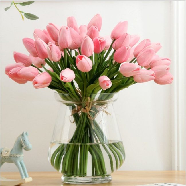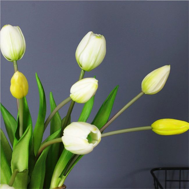 Product Description: Product name: Tulip Artificial Flower Real Touch Artificial Bouquet for Wedding Decoration Flowers Home Garen Decor Size(cm): 32cm Weight: 0.1KG Packing: 10pcs 20pcs 30pcs per carton packaging Color: yellow, pink, purple, white, black, blue, green, any can custom any size follow pantone color OEM: Yes Material: Silk+ Plastic+Iron Wire MOQ: 100pcs can mixed…