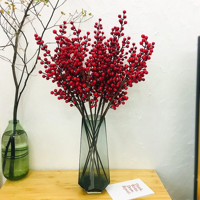 Product Description: Product name: Wholesale Wedding Hall Decoration Artificial Grass Flower Bouquet Simulation Berry Plastic Flowers Size(cm): 73cm Weight: 0.1KG Packing: 10pcs 20pcs 30pcs per carton packaging Color: yellow, pink, purple, white, black, blue, green, any can custom any size follow pantone color OEM: Yes Material: Silk+ Plastic+Iron Wire MOQ: 100pcs can mixed wholesale Sample:…