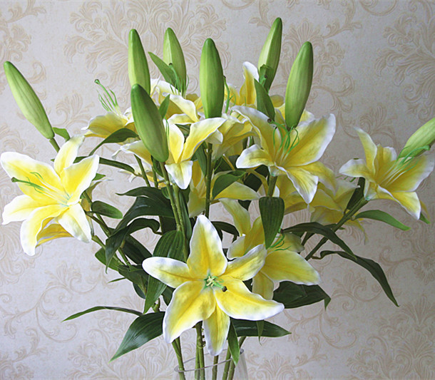 artificial flowers silk lilies faux plastic pu real touch floral bouquet party table centerpieces home decoration