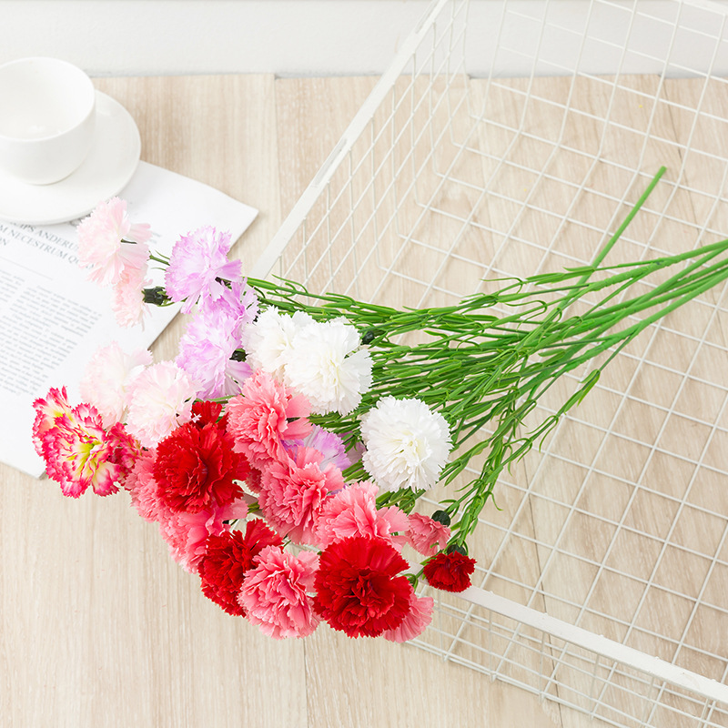 multi color 6 heads artificial flowers silk carnation dianthus caryophyllus bouquet indoor bonsai flower (1)